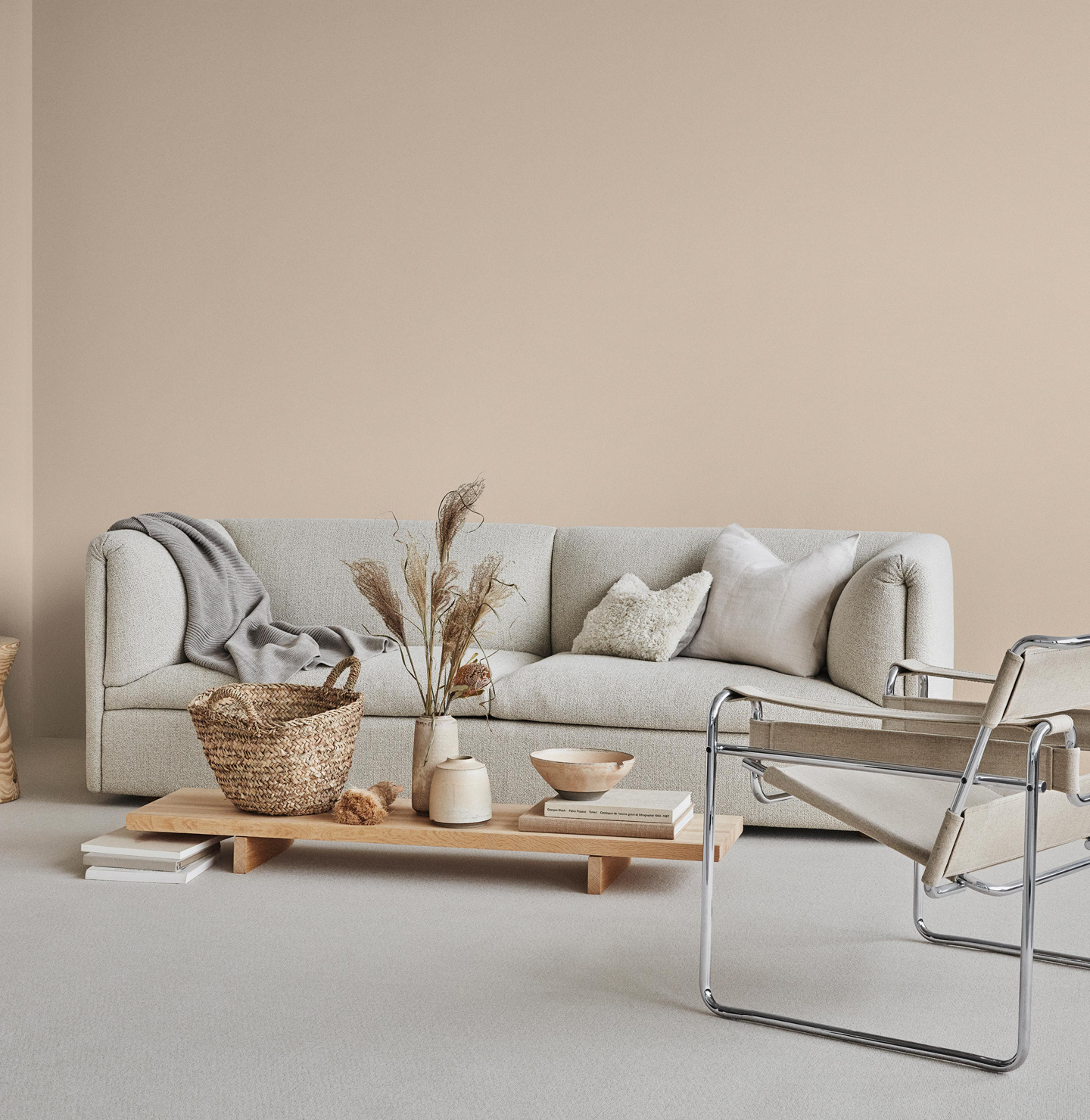 A faint peach nuance. The colour is subdued and greyish. Comparatively it is brighter, less pink and more golden than 10580 Soft Skin. It works beautifully with subdued white nuances such as 1622 Reflection, but also with the more golden whites.