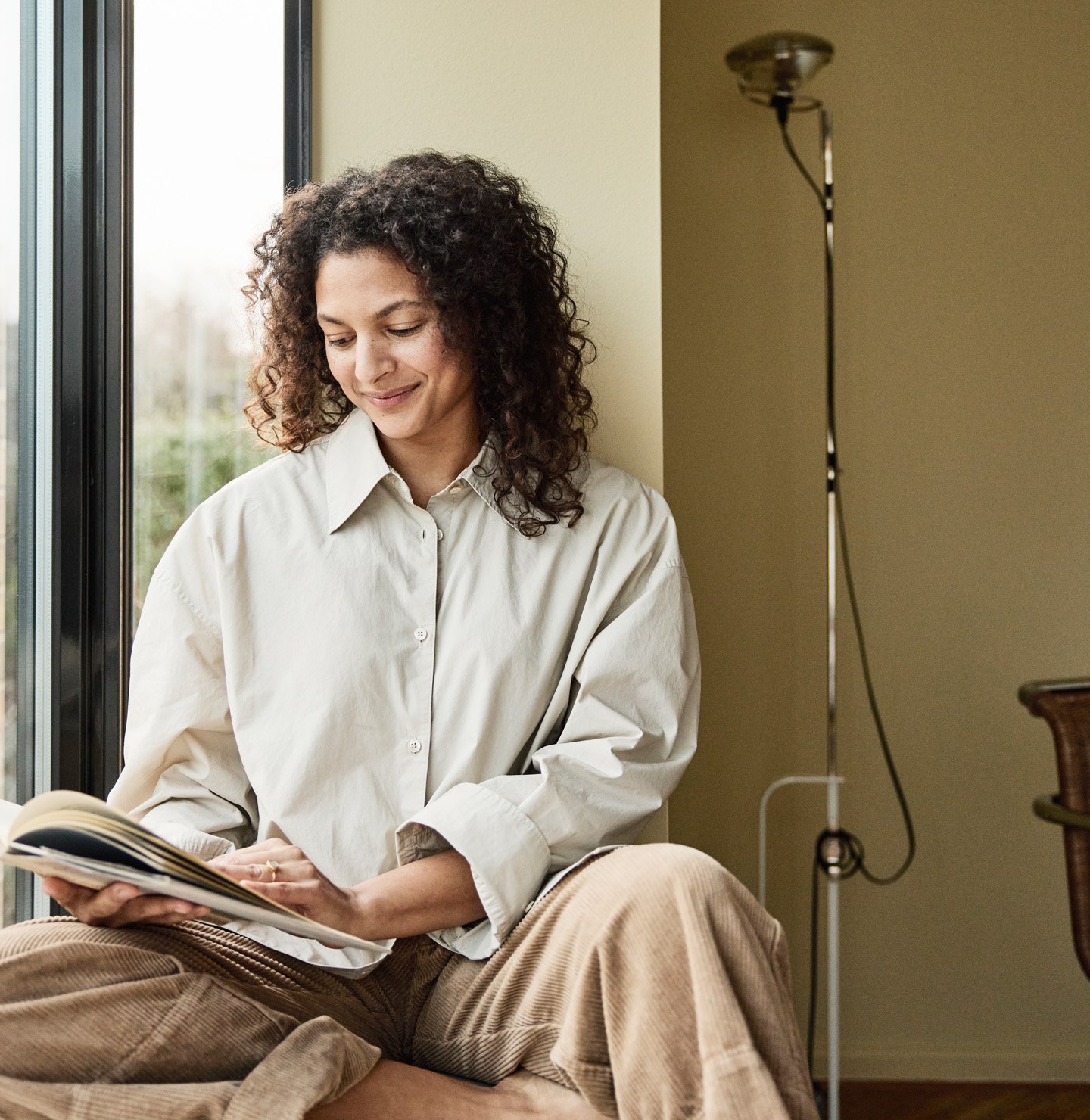 Forest Light is a muted, greyish yellow with a green undertone. It’s fresh, yet muted and calm. Combine it with golden whites or as a cool contrast to darker greys. A lush companion to golden greens and greenish blues