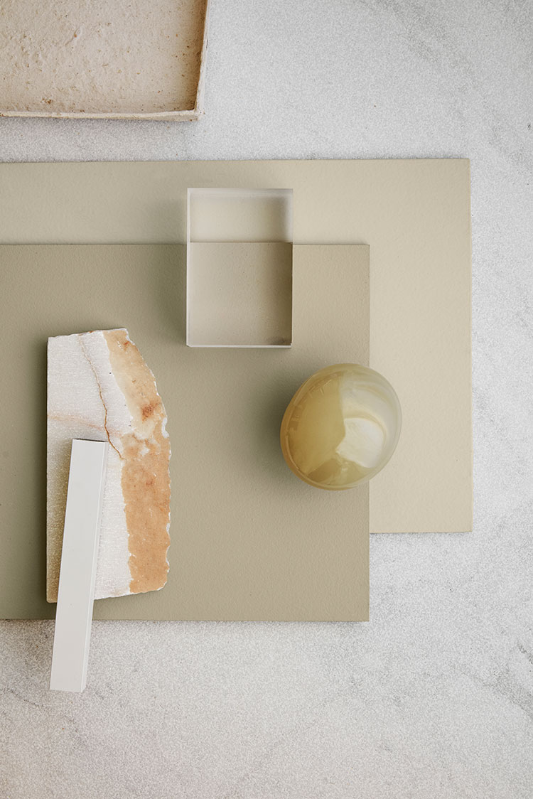 A muted, greenish beige tone. This is a colour that will come across as a mix of beige, yellow and green.