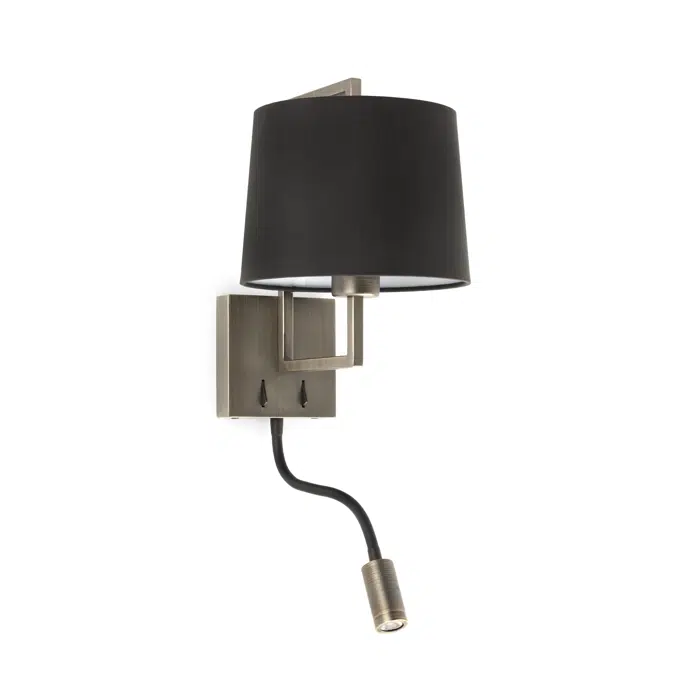 20173-03 - FRAME Old Gold/Black Wall Lamp with Reader by Faro Barcelona combines elegant design with functionality. This wall light features a stylish old gold and black finish, perfect for adding a warm ambiance and focused reading light in any room.