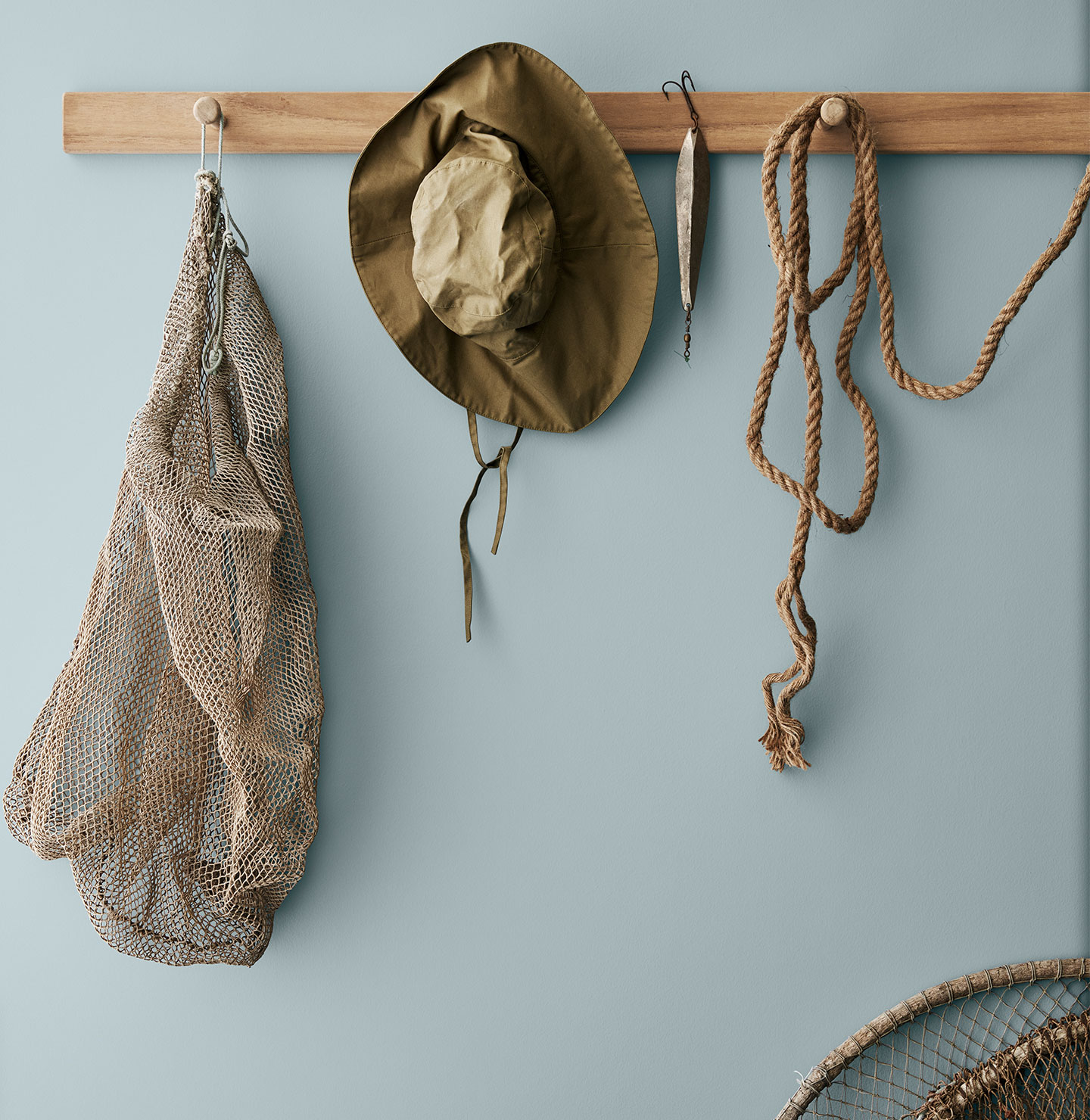 A muted, lighter shade of blue. This has a pleasant greyish veil, and it can be described as both calm and timeless. Looks good with cool whites, muted beiges and a range of grey tones, as well as with other deeper blue-grey tones.