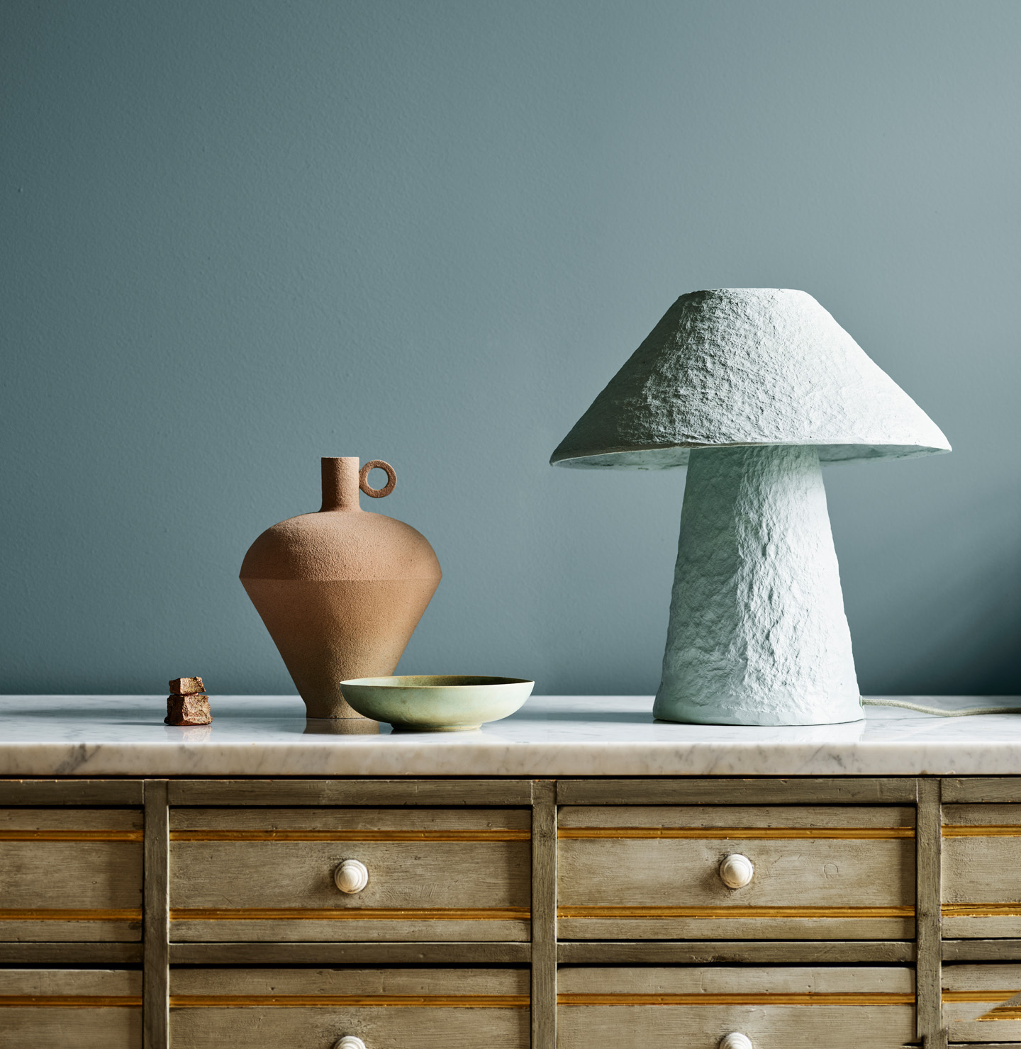 A muted greenish blue.
