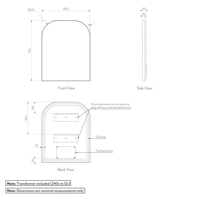 The Arch Mirror Led features a captivating curved frame that adds architectural interest while the built-in LED lights provide optimal, even illumination, creating a stunning focal point for dressing areas, bathrooms, or hallways. Crafted with premium materials, this mirror ensures durability and long-lasting performance. Its energy-efficient LED technology not only brightens your reflection but also adds ambient lighting to elevate the room’s atmosphere.