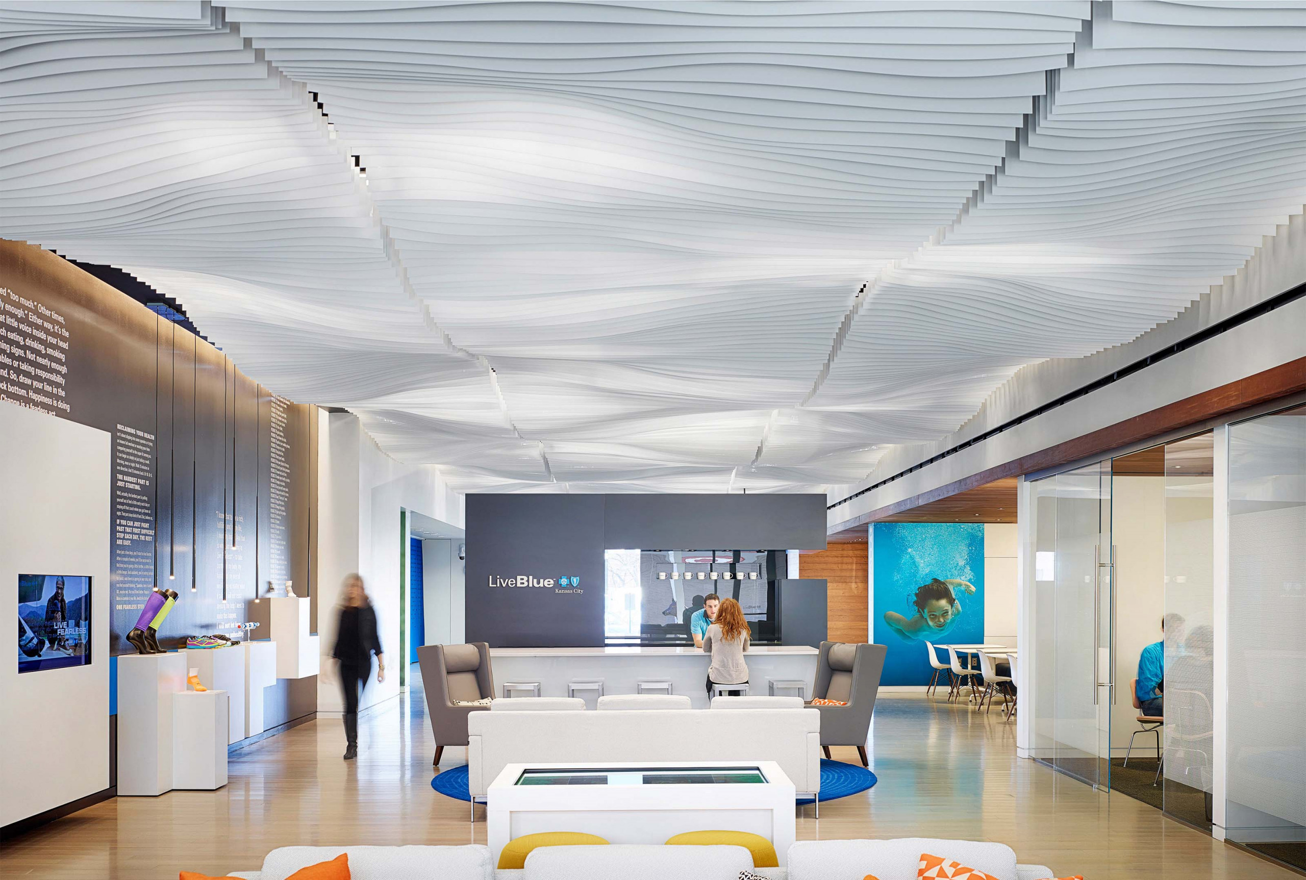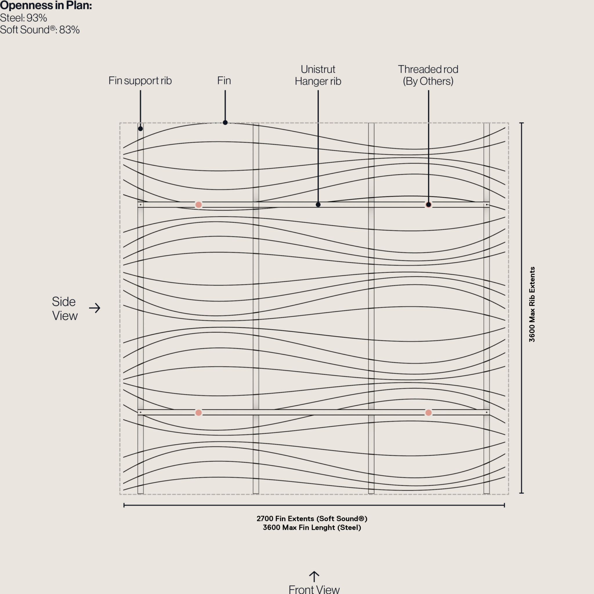 Contour 3D combines the flexibility of all the Atmosphera® systems into a limitless canvas to suit your custom needs. Your design will beautifully flow in the fin direction while capturing a layered undulating landscape in the other. The combination of the two generates a dynamic surface that is awe inspiring. Don’t limit your movement to just one direction; instead, go for bold and create a truly one-of-a-kind design that stuns. Contour 3D’s panels are available in either powder-coated steel, for a bold look, or in our Asoft™ material, for acoustic comfort.