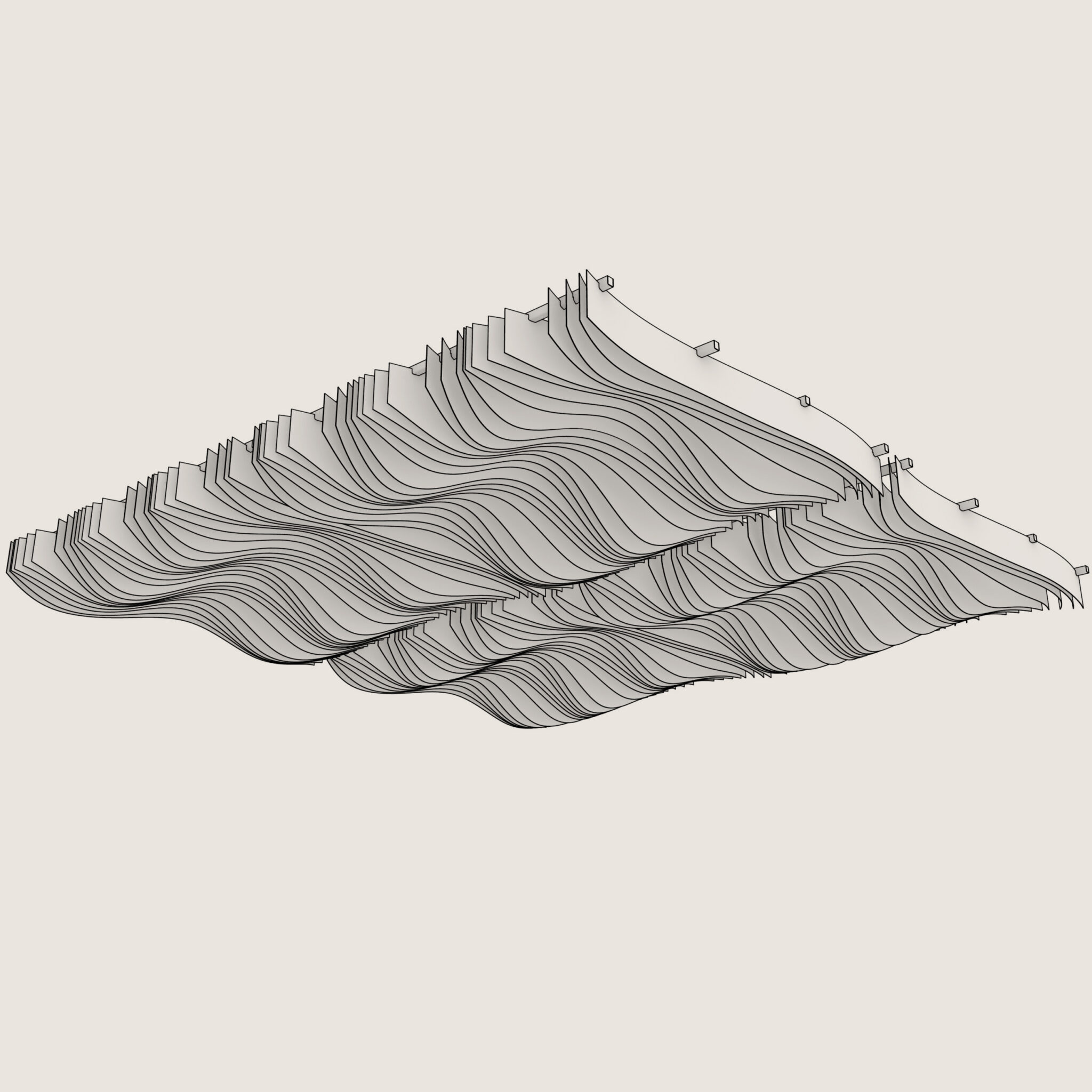 Introducing the NOWN 'Atmosphera® Adaptive CONTOUR 3D,' where innovation meets artistry in acoustic design. This unique ceiling baffle system allows you to unleash your creativity, offering a flexible canvas that adapts seamlessly to your specific needs. With its dynamic, undulating landscape and harmonious flow in multiple directions, CONTOUR 3D transforms your space into an inspiring environment that captivates and engages.