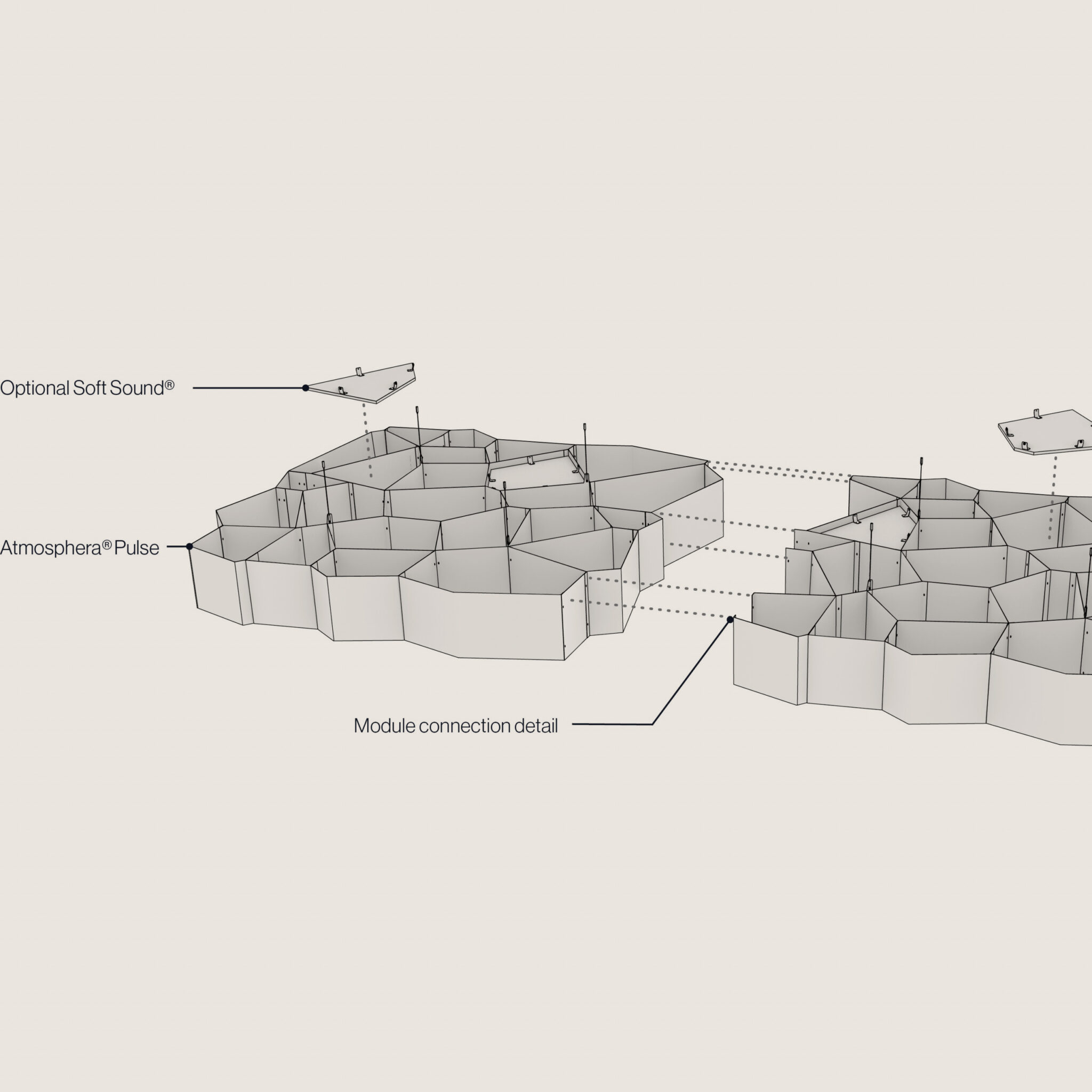 Introducing the NOWN Atmosphera® Adaptive PULSE, a revolutionary acoustic solution designed to enhance the ambiance of any space. Its interconnected modules not only serve to manage sound but also create a captivating visual flow, guiding viewers effortlessly throughout your building. The customizable nature of Pulse allows for the perfect balance of openness, letting you tailor the environment according to your design vision.