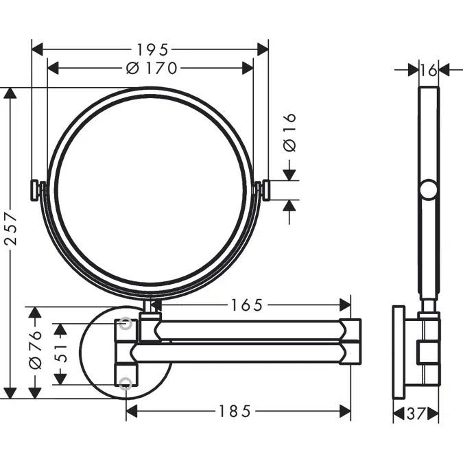 The AXOR Universal Circular Shaving Mirror features a perfectly round shape that provides a clear, undistorted reflection ideal for close-up shaving and facial care. Its universal mounting system ensures easy installation and adjustability, allowing you to position the mirror at the optimal angle. Made with high-quality materials, this shaving mirror boasts durability and resistance to moisture, making it a long-lasting bathroom companion.