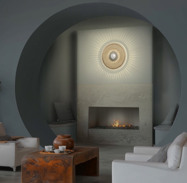 The combination of the small (35×17 cm) and large (40×17 cm) wall lamps creates a balanced light composition. Each piece, handcrafted with care, has a unique texture thanks to the natural fiber structure of bamboo.