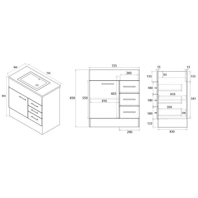 Dimensions: 750mm width for compact yet spacious storage