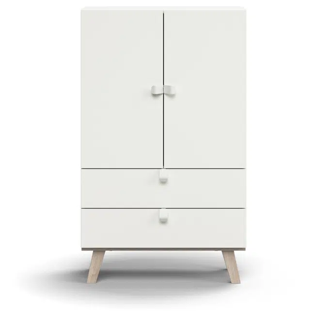 The Cabinet Qbus by AJ Products is a versatile wardrobe designed to combine function and modern aesthetics. Featuring a sturdy leg frame, two spacious shelves, and two convenient drawers with elegant handles, this cabinet offers an organized storage solution perfect for any space.