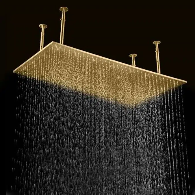 The Casoria rain shower head features a generous 20x40 inch surface area that delivers an immersive rainfall effect, creating a spa-like ambiance in your own home. Crafted with a stunning brushed gold finish, it adds a touch of sophistication and warmth to any bathroom decor. Installed on the ceiling, this shower head ensures an even water distribution for a refreshing, full-body rinse. Made from durable, corrosion-resistant materials, it is built to maintain its radiant appearance and performance for years. Its sleek design is complemented by easy installation compatibility with standard plumbing systems.