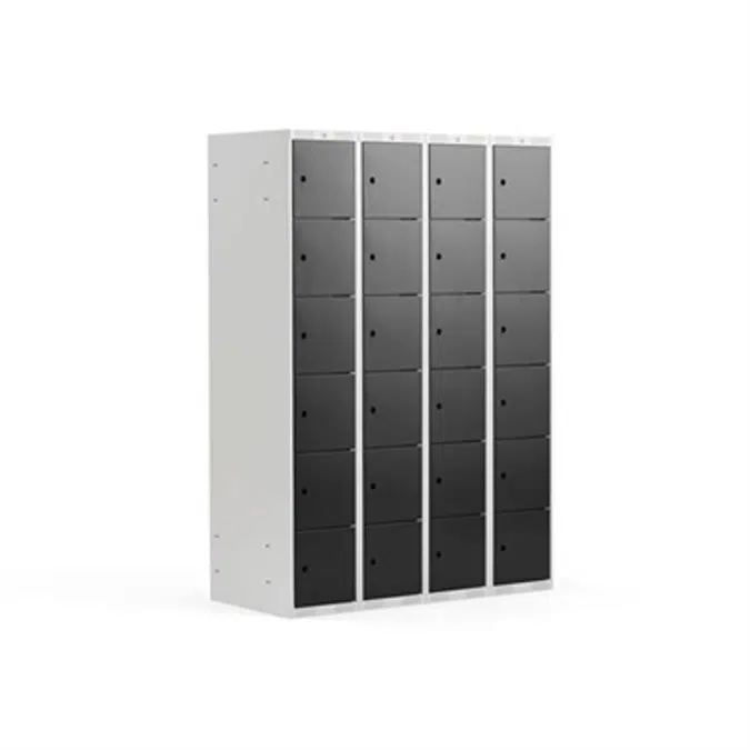 This locker provides ample space with 24 individual compartments, promoting efficient space management and convenience for users.