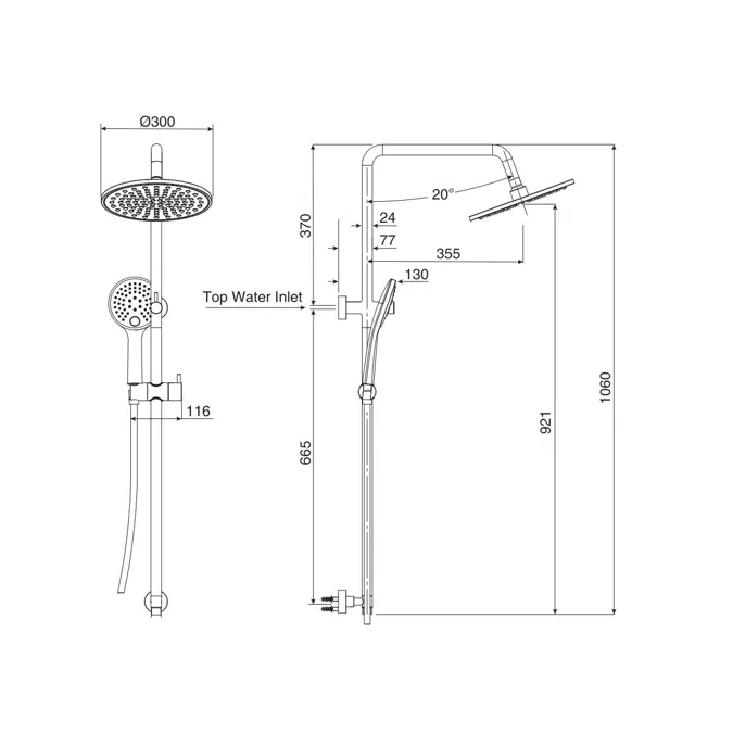 Twin rail design enables easy adjustment of the handheld shower