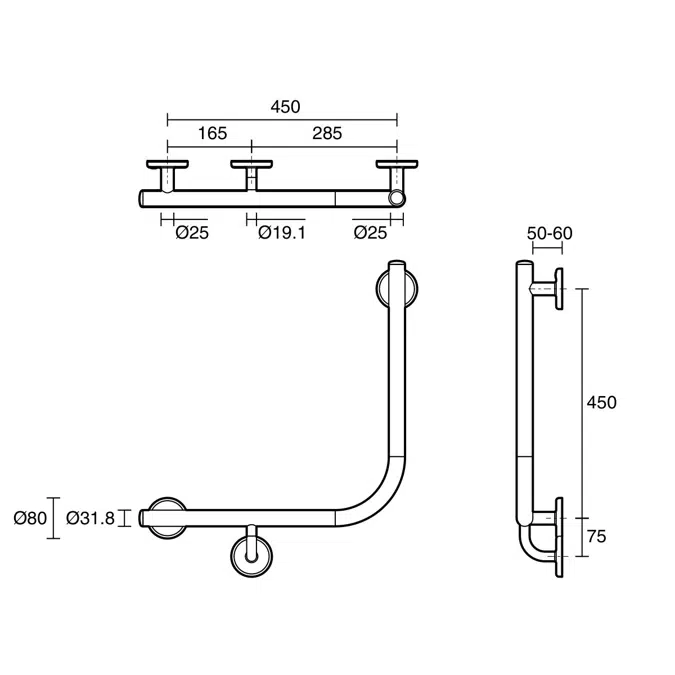 Designed to assist individuals with limited mobility, the grab rail measures 450x450mm, offering ample space for secure hand placement. Its 90° angle design allows for easy mounting beside the toilet, providing optimal leverage and balance. The high-quality stainless steel construction ensures long-lasting resistance to corrosion and daily wear, making it ideal for both residential and commercial bathrooms.