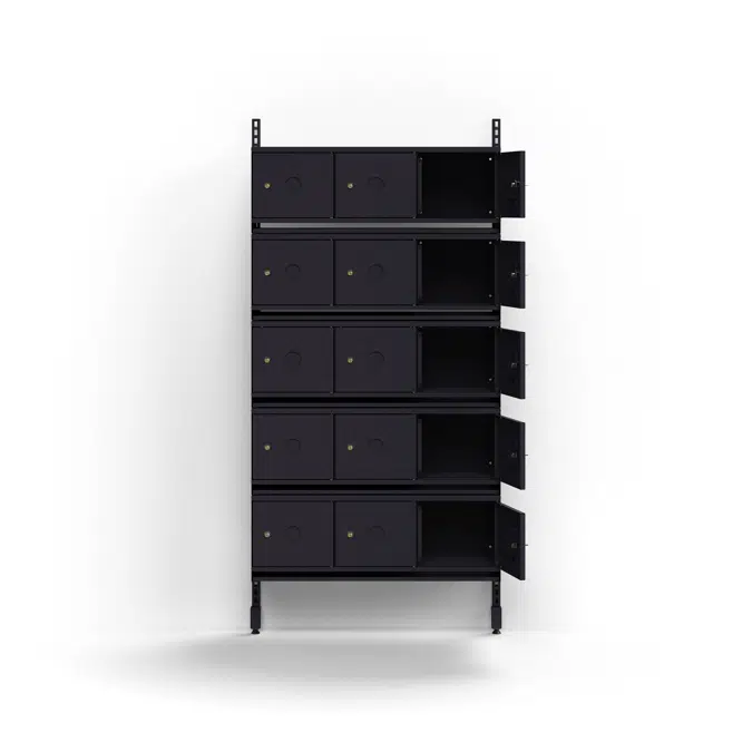 Crafted with a sturdy metal cover, the Entry 15 shoe rack combines a sleek industrial look with robust construction. Its wall-mounted design ensures easy access to your shoes without cluttering your entryway. The unit offers ample storage capacity for multiple pairs, making it ideal for busy households or office entrances. The metal cover not only protects your shoes but also adds a modern aesthetic to your hallway or entrance area.