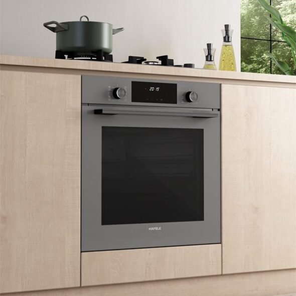 The ORION Built-in Oven brings elegance to your kitchen with its impressive combination of black, gray, and white glass surfaces. This 60 cm wide model offers ample usable space with its 73-liter interior and 6-stage wire shelf system. Telescopic rails allow for easy movement of trays and grills, while the LED touchscreen, steam-assisted cleaning, easy-removable glass lid, and retractable pop-up buttons provide a practical experience. With its quiet and soft-closing door design, ORION adds comfort to your kitchen with 10 different cooking functions.
