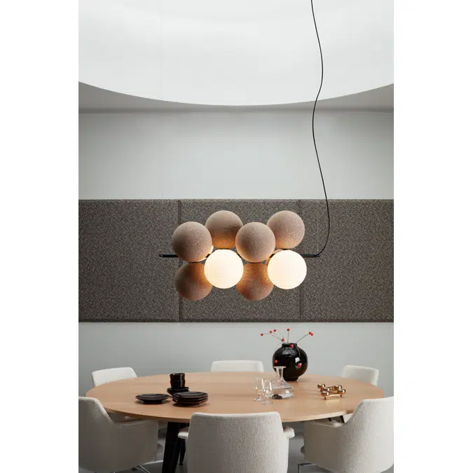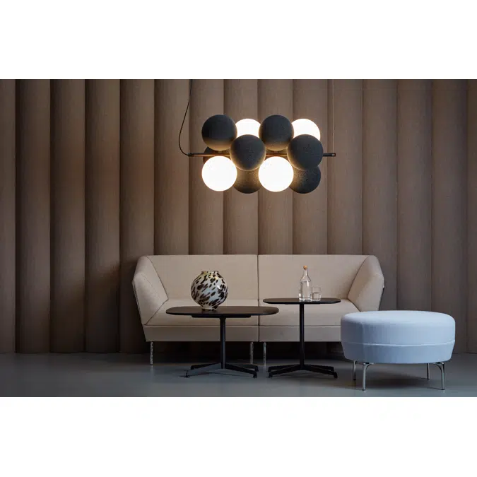The new Holly acoustic lighting is sculptural, mysterious, and plays with the contrasts between light, reflection, and shadow. The product is good at absorbing low frequency sound. Available in two versions; horizontal and vertical, with or without lighting.