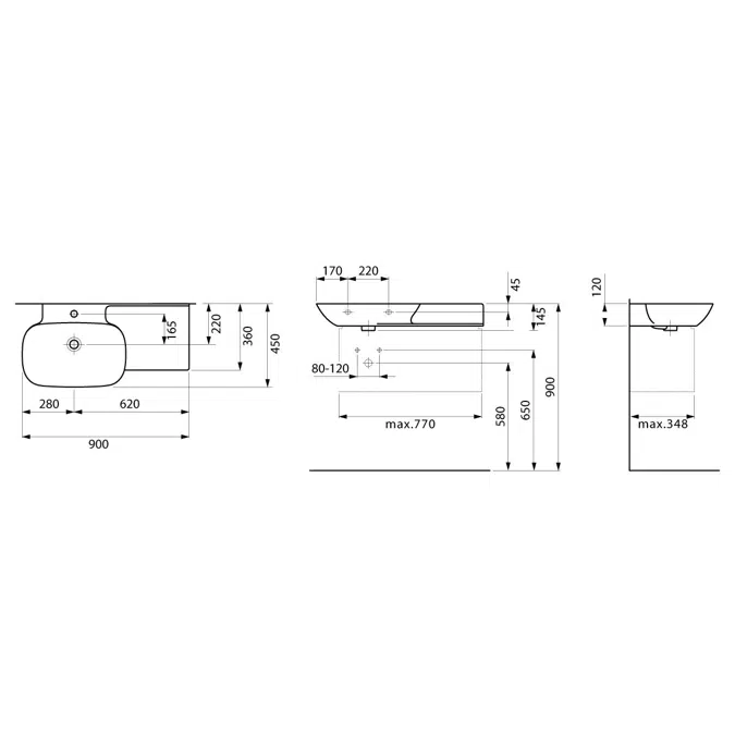 The Ino White Wall Basin Shelf features a spacious 900mm width with a left-positioned bowl, providing ample space for daily use and convenience. Crafted with high-quality materials, it includes a built-in overflow to prevent water spillage and a single taphole for easy installation of your preferred faucet. Its crisp white finish complements a wide range of bathroom styles, from contemporary to classic, while the integrated shelf adds extra utility for toiletries or decorative accents.
