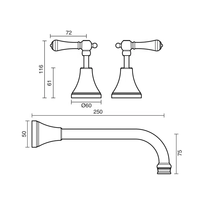 Crafted with brass and finished in a luxurious gold tone, this wall-mounted basin set features porcelain lever handles that add a timeless appeal. The 250mm reach ensures optimal water flow and clearance, enhancing everyday use without sacrificing style. Designed for durability and ease of installation, it complements both traditional and contemporary bathroom interiors.