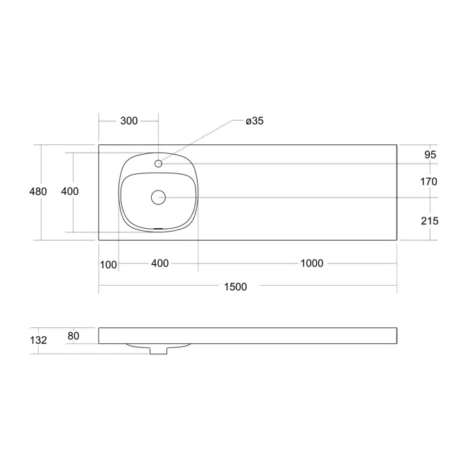 1500mm length providing spacious basin area