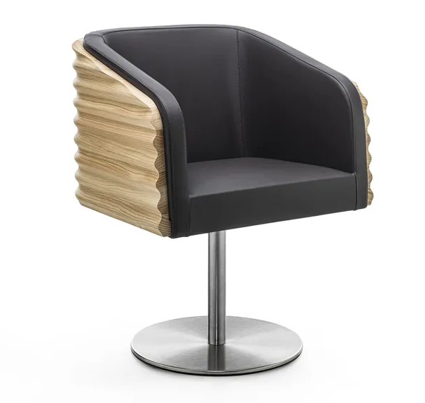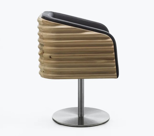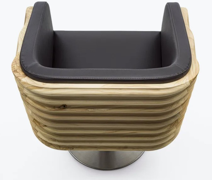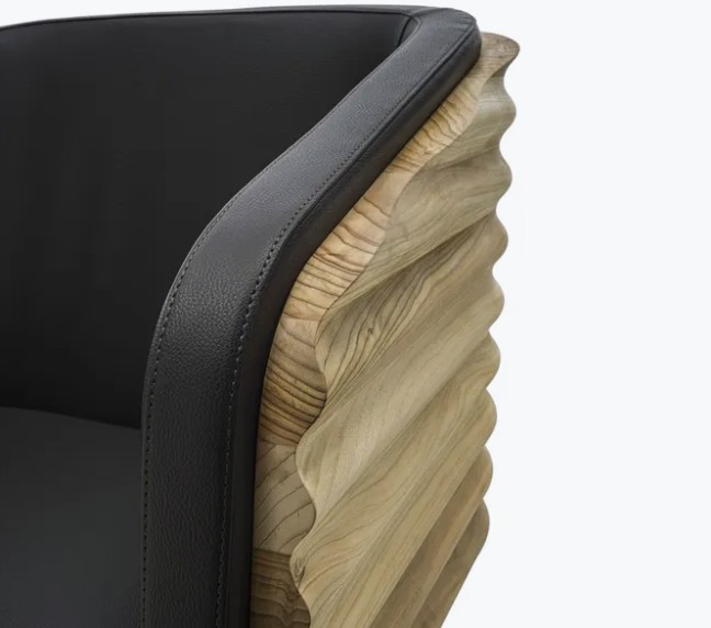 An armchair crafted from solid, pleasantly scented cedar wood, featuring fluid and embracing lines. This design transforms the concept of sitting into a ritual of pure comfort.