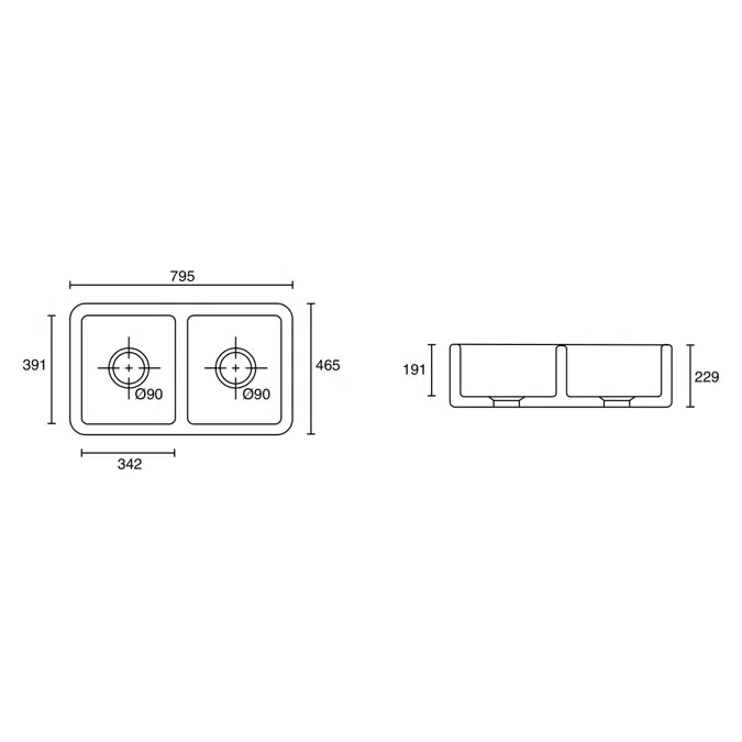 Lancaster 800mm Double Bowl Fireclay Butler Sink by Reece