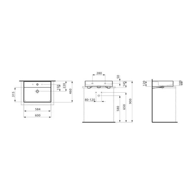Assembly Tools: Standard basin mounting kit including sealant and fixing bolts