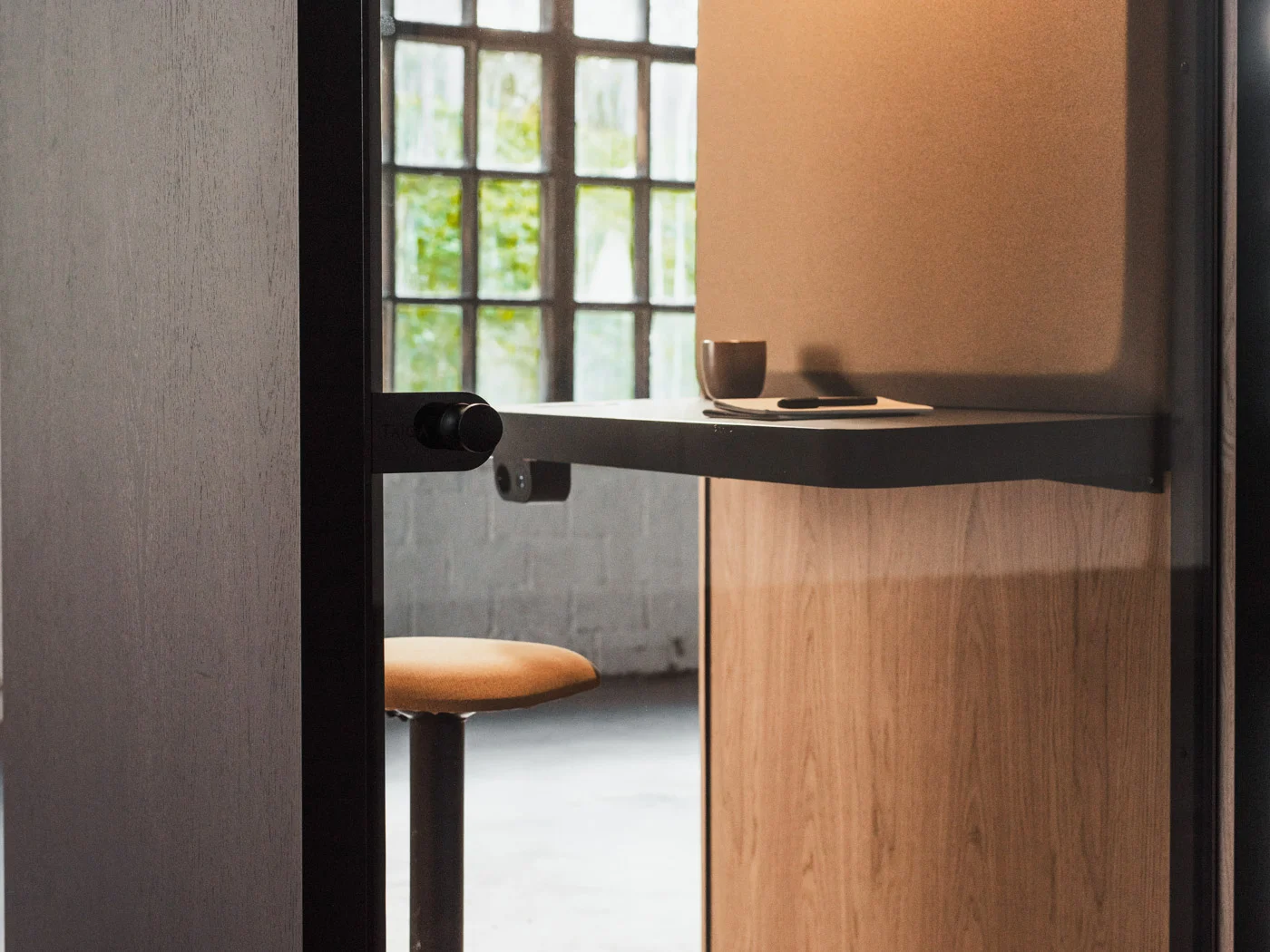A compact, sound-insulated booth designed for private work or phone calls. This phone booth is ideal for individual focus, free from distracting elements.