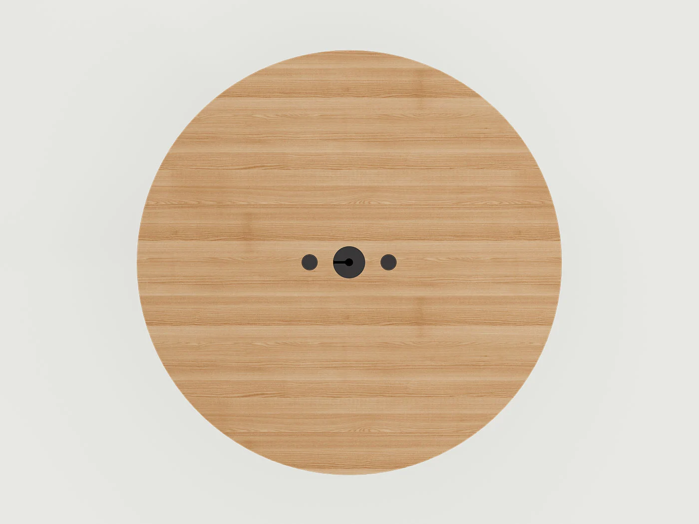 Lohko Conference Table is designed to support collaborative meetings with equal participation. Its round form encourages inclusivity, while the discreet central power outlet enables seamless connectivity without compromising the table’s clean aesthetic. Finished with an elegant oak veneer top and a solid black leg, it balances functionality with refined simplicity.