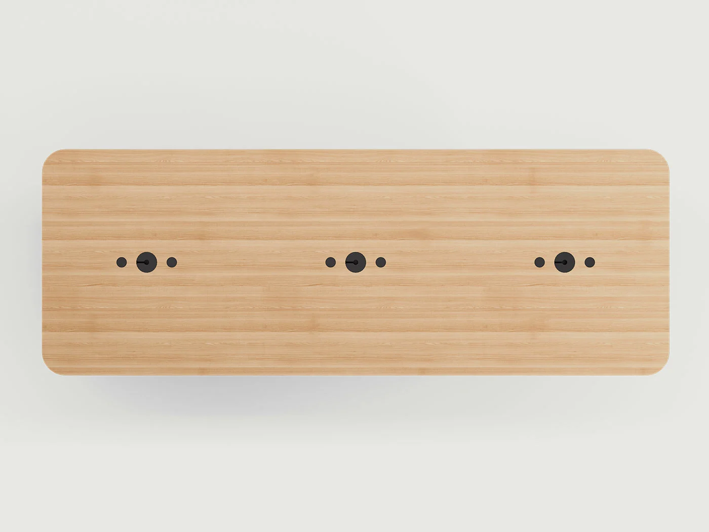 Designed to pair with our Flex spaces, the Lohko Conference Tables create a balanced setting where everyone can take part and stay connected. Ideal for extended meetings and larger groups, Lohko Conference Table³ combines generous workspace with built-in functionality. With a streamlined design, natural materials, and triple power outlets, it supports structured dialogue and smooth digital access without distraction.