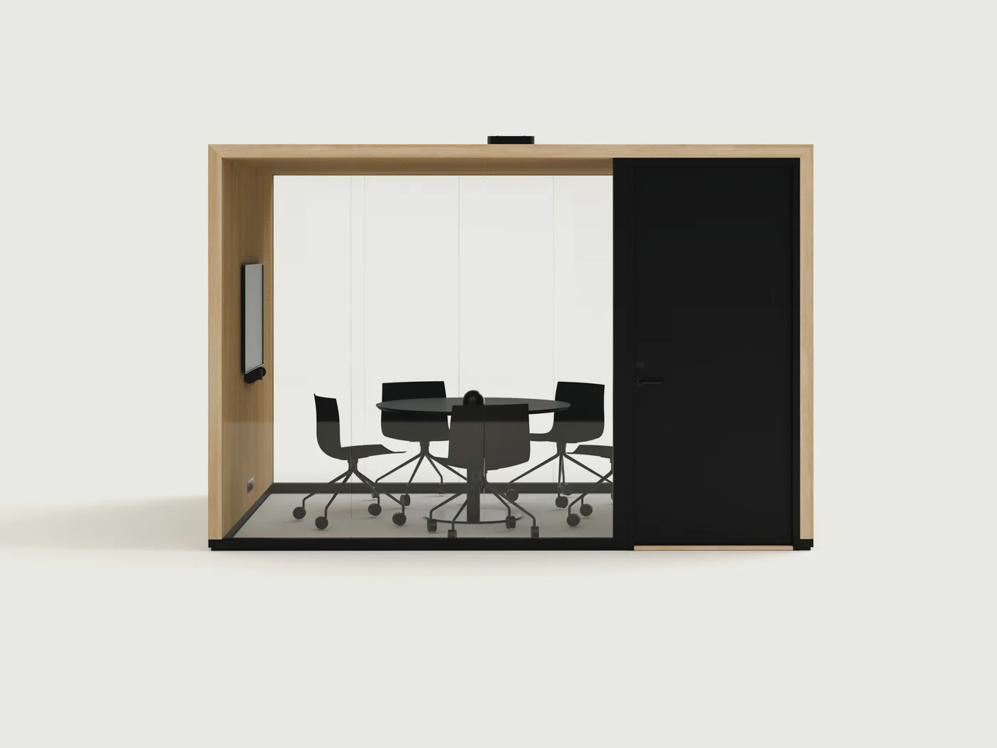 A versatile modular cabin designed for dynamic meetings or collaborative work in mid-sized offices, with a capacity of up to 8 people.