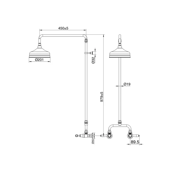 Spaces requiring exposed shower systems for aesthetic or practical reasons