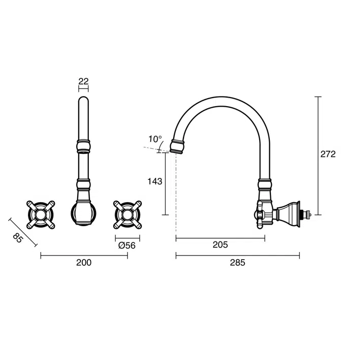 Milli Voir Matte Black Cross Handles Wall Sink Set 2265431 by Reece combines sleek design with durable functionality. This sink faucet set features matte black cross handles for precise water control, perfect for modern and stylish bathroom setups.