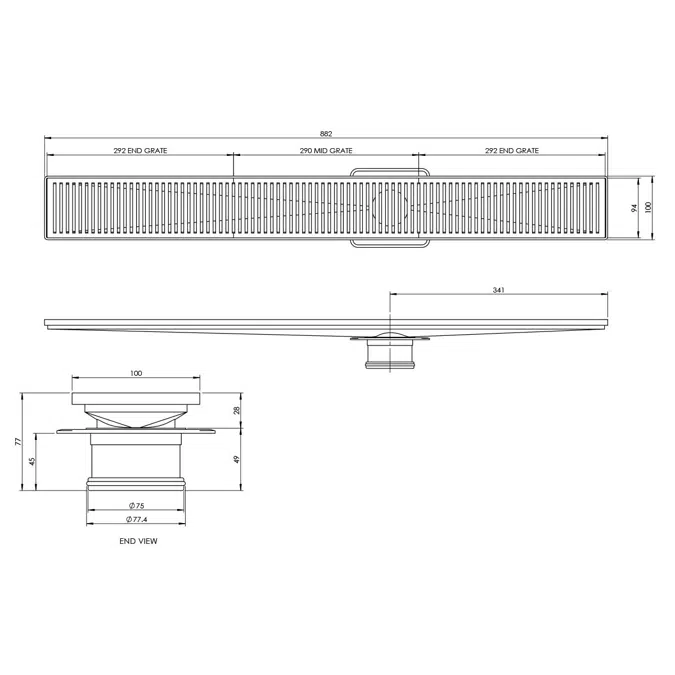 Mizu 900mm Long Brushed Chrome Shower Channel Waste 2262104 by Reece