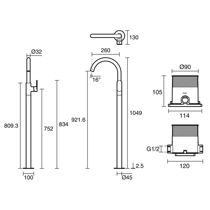 Floor mounted design ideal for freestanding bathtubs