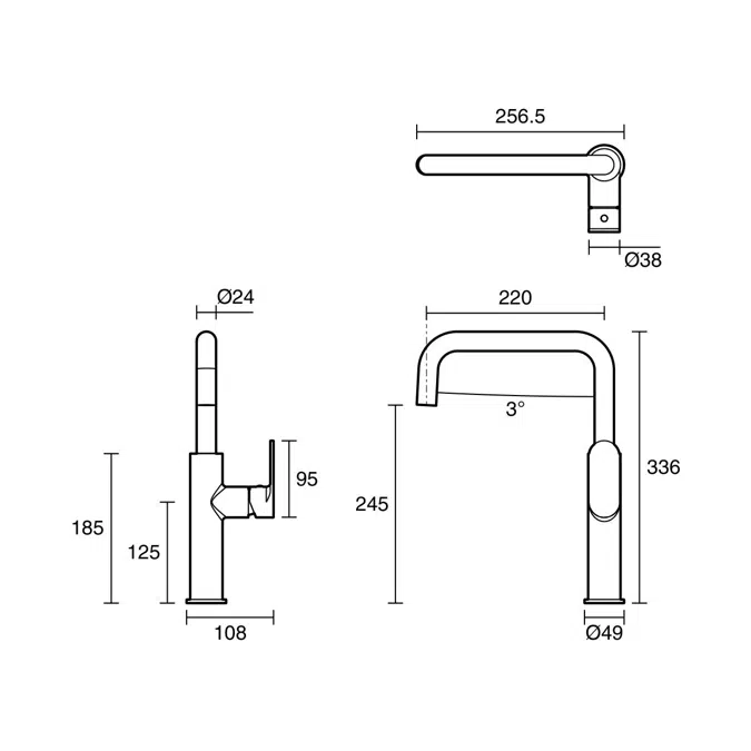 Gooseneck spout design: Provides increased clearance and flexibility