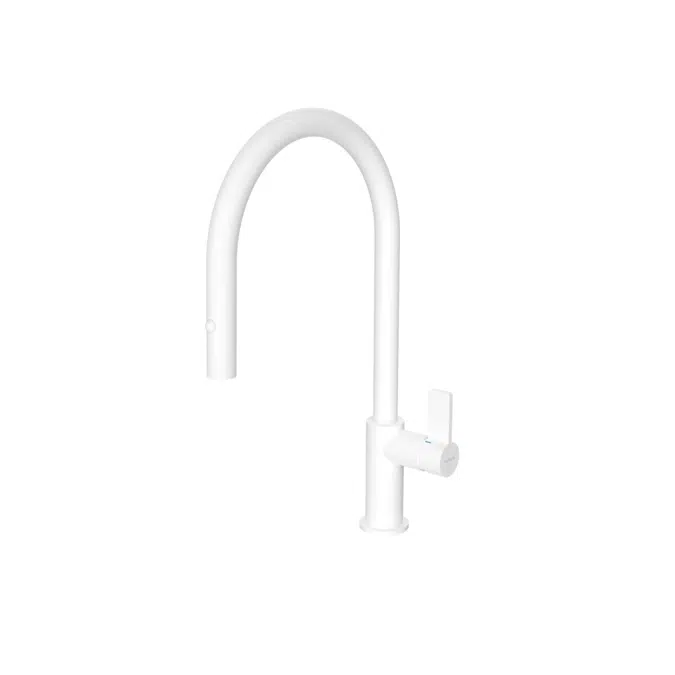 Nobili Flag Matte White Gooseneck Pull Out Sink Mixer 2266861 by Reece combines sleek design with functional excellence. This faucet features a high arch gooseneck spout with a pull-out spray, perfect for versatile kitchen use and easy cleaning.
