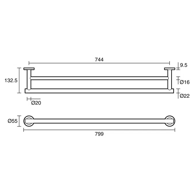 Ona Chrome Double Towel Rail 800mm 15077 by Reece
