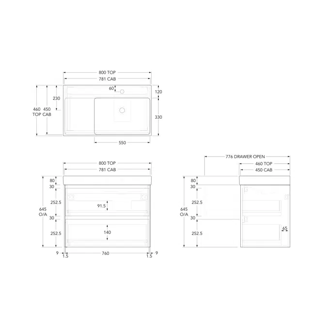 800mm width: Space-efficient size perfect for medium-sized bathrooms