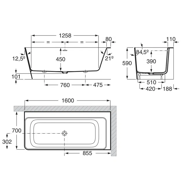Ona White Right Hand Back to Corner Bath 1600mm x 700mm 9512579