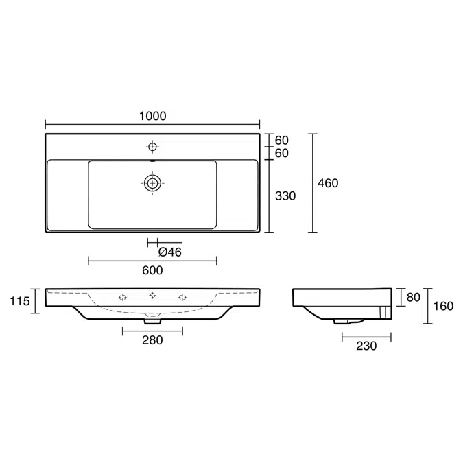 Ona White Wall Basin 1000mm x 460mm 1 Taphole Overflow 1832714 by Reece