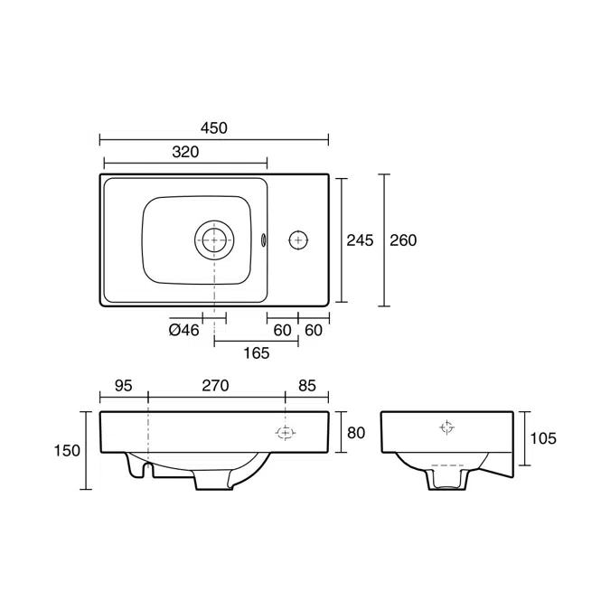 Compact dimensions: 450mm width x 260mm depth, perfect for smaller spaces