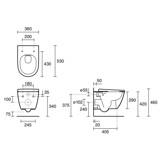 Wall hung installation creates a minimalist, space-saving bathroom appearance