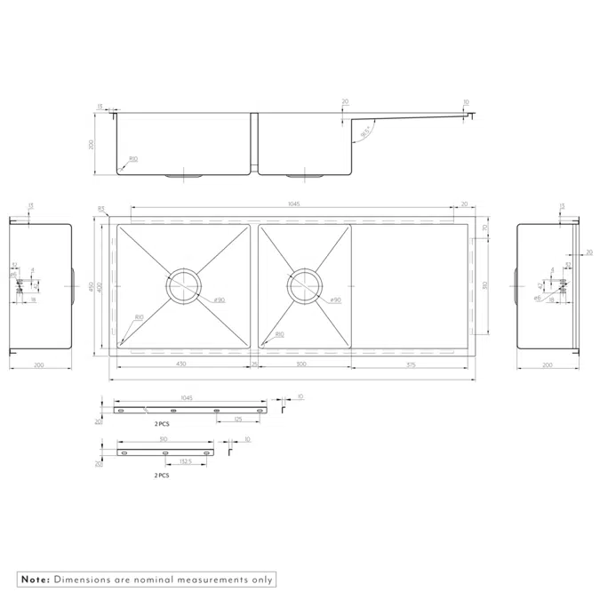 • Double-bowl design: Offers ample space for multitasking and food preparation.
