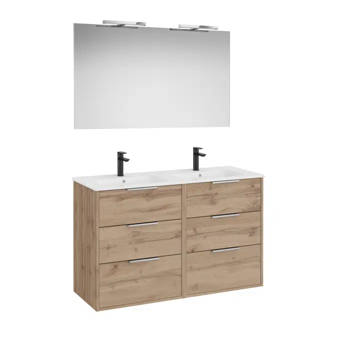 Optica 6-Drawer Double Basin Bathroom Set by Roca is a sleek and practical bathroom cabinet solution. Designed for efficient storage, this set features six spacious drawers beneath a double basin, offering ample space to organize your essentials neatly.