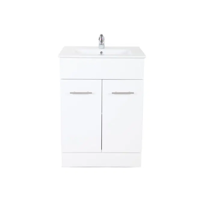 Crafted with a clean white finish, the vanity unit features a spacious centre bowl sink with a single taphole, perfect for accommodating your preferred faucet. The 600mm width offers a compact yet practical solution, optimized for smaller bathrooms or powder rooms. The unit includes two doors that open up to reveal ample storage space, ideal for organizing toiletries and bathroom essentials neatly out of sight. The integrated kick board enhances the unit’s contemporary aesthetic while providing stability and ease of cleaning.