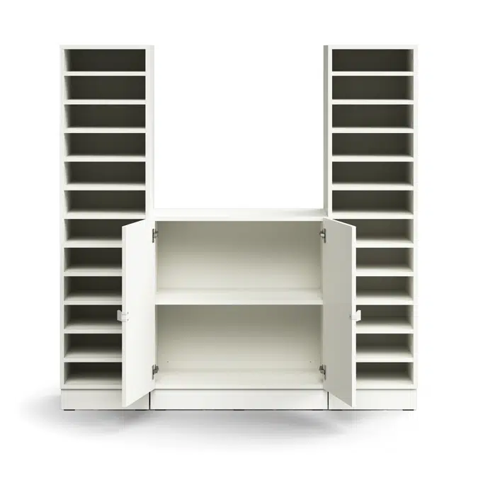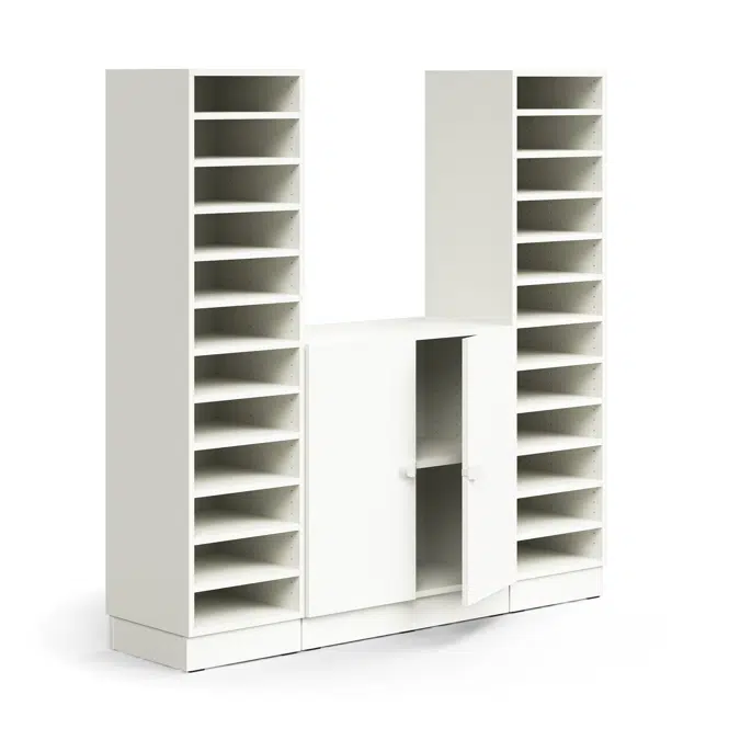 Crafted with functionality and style in mind, the Qbus unit features multiple pigeon holes and adjustable shelves alongside a secure cupboard space. Its modular design offers flexible storage options, making it ideal for maximizing vertical space while maintaining a tidy and accessible work area. The sturdy construction ensures durability, while the clean lines and neutral finish allow it to blend seamlessly into various interiors.