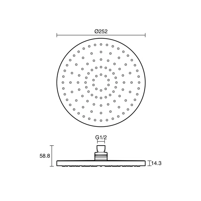 Wide 250mm overhead showerhead for expansive water coverage