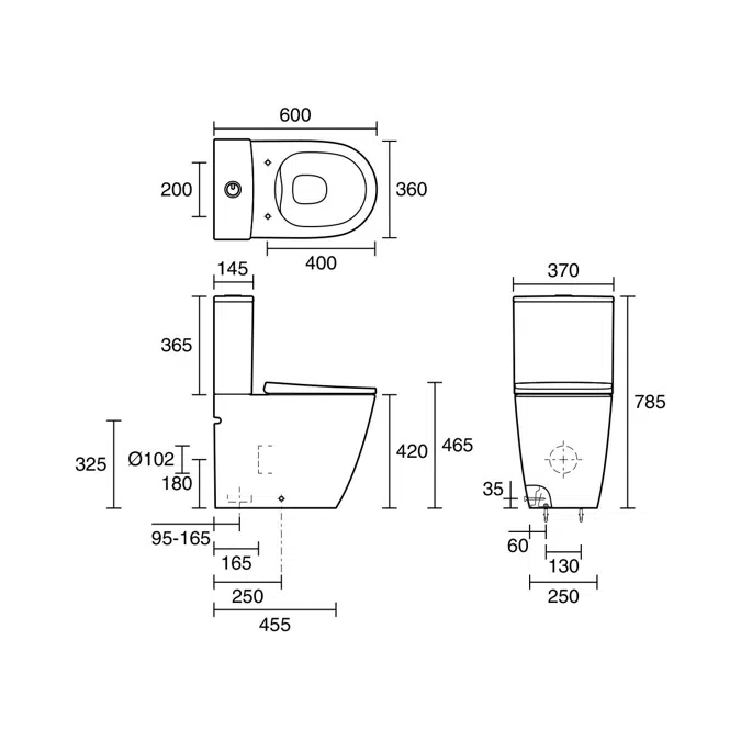 • Rimless bowl design for enhanced hygiene and easy cleaning