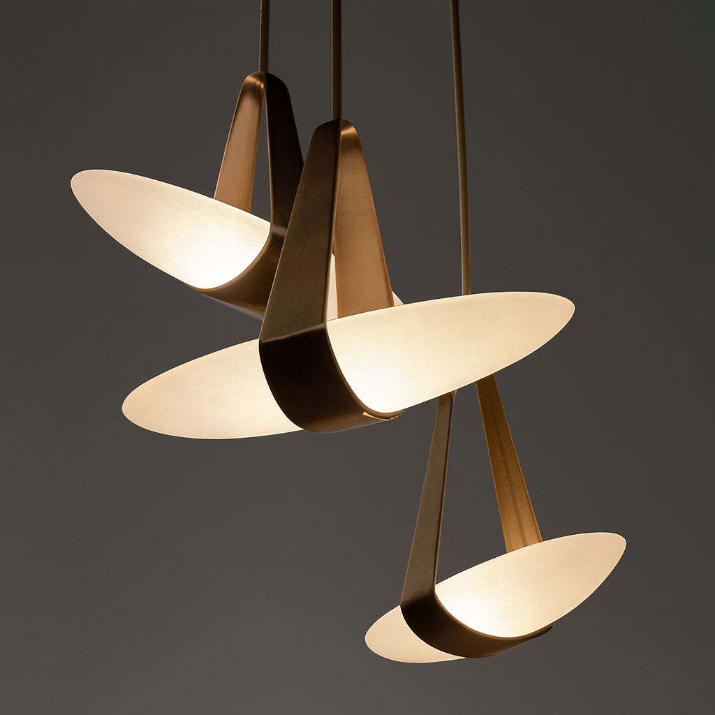 Designed with softly contoured plexi diffusers and metal structural elements, this pendant light stands out with its organic form and balanced composition. Light is evenly diffused through the plexi surfaces, while the metal frame adds structure and refinement.